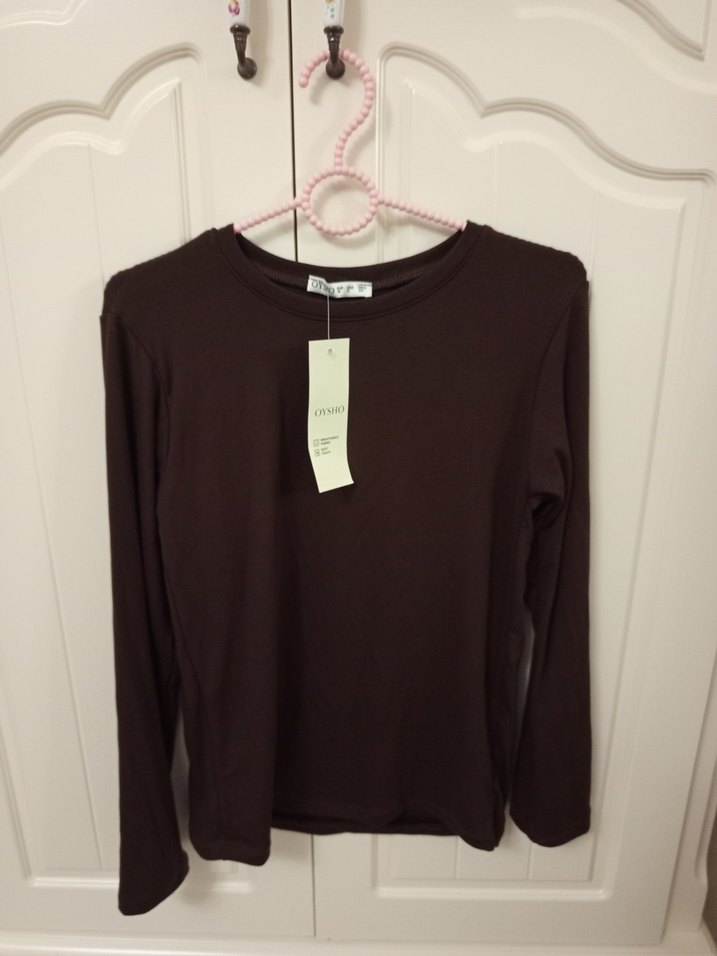OYSHO Koyu kahverengi, uzun kollu, yuvarlak yakalı üst giyim.