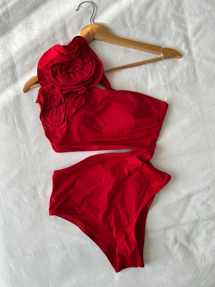 Oysho Kırmızı Fırfırlı Mini Bohem Mayo