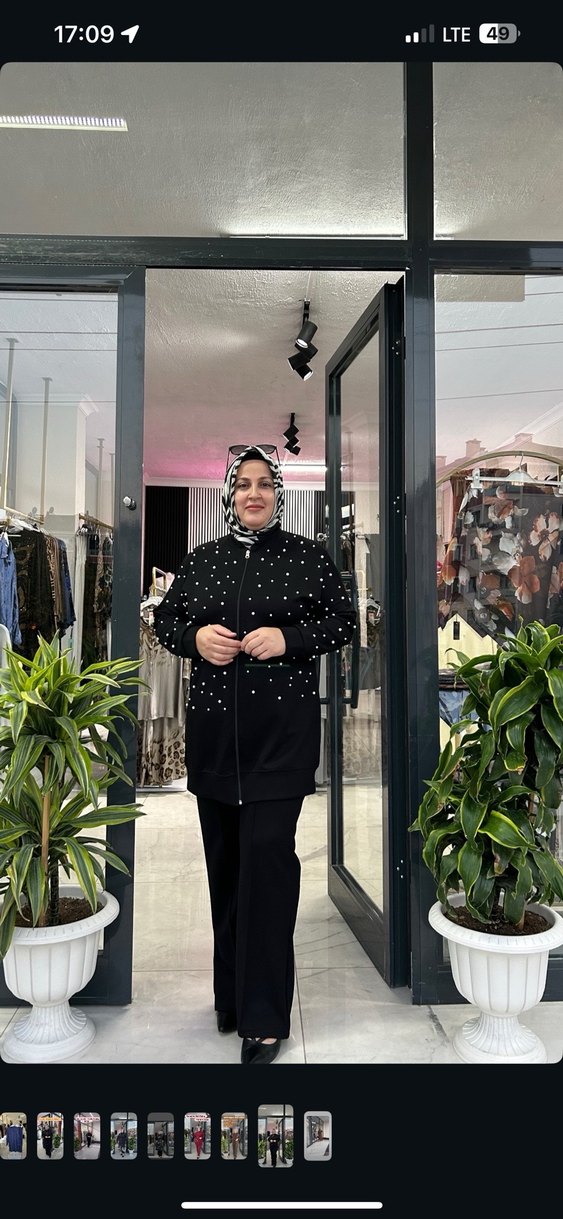 Oysho kumaş İnci işlemeli Siyah Kadın Uzun Ceket takıım