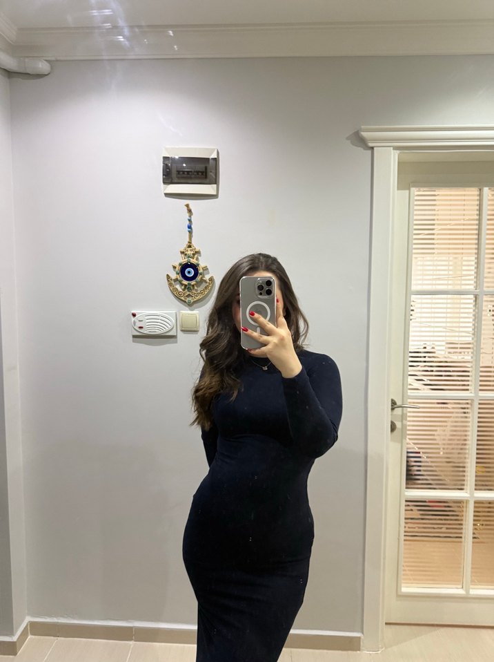Oysho Lacivert vücudu saran midi elbise