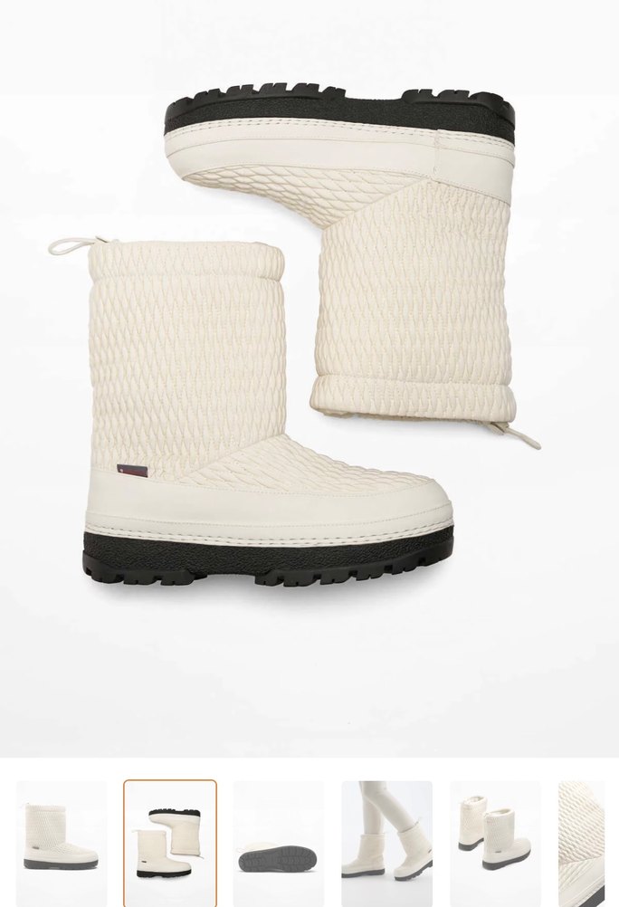 Örgü detaylı, beyaz kadın botu. Günlük sokak stili için rahat blok topuk ve kauçuk tabanlıdır. ❄️ Oysho ski collection Kar botu