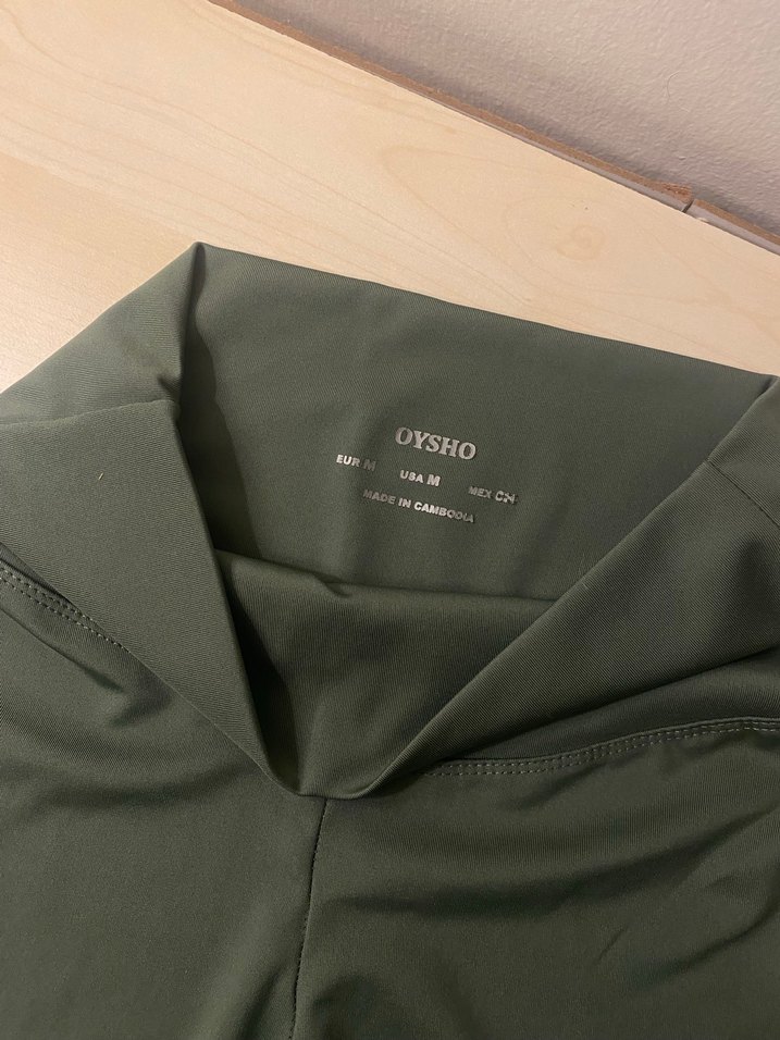 Kadınlar için haki renk baskılı, normal uzunlukta ve vücuda oturan midi tayt. Günlük sokak stili için uygun, OYSHO markası, sentetik kumaştan üretilmiştir. Orijinaldir.