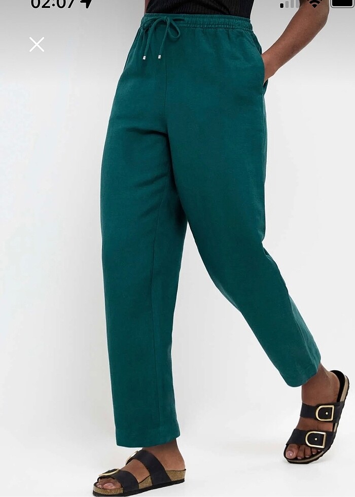 Keten yüksel bel geniş kalıp pantolon . Petrol yeşili . Hiç giyilmedi bir kusuru yoktur