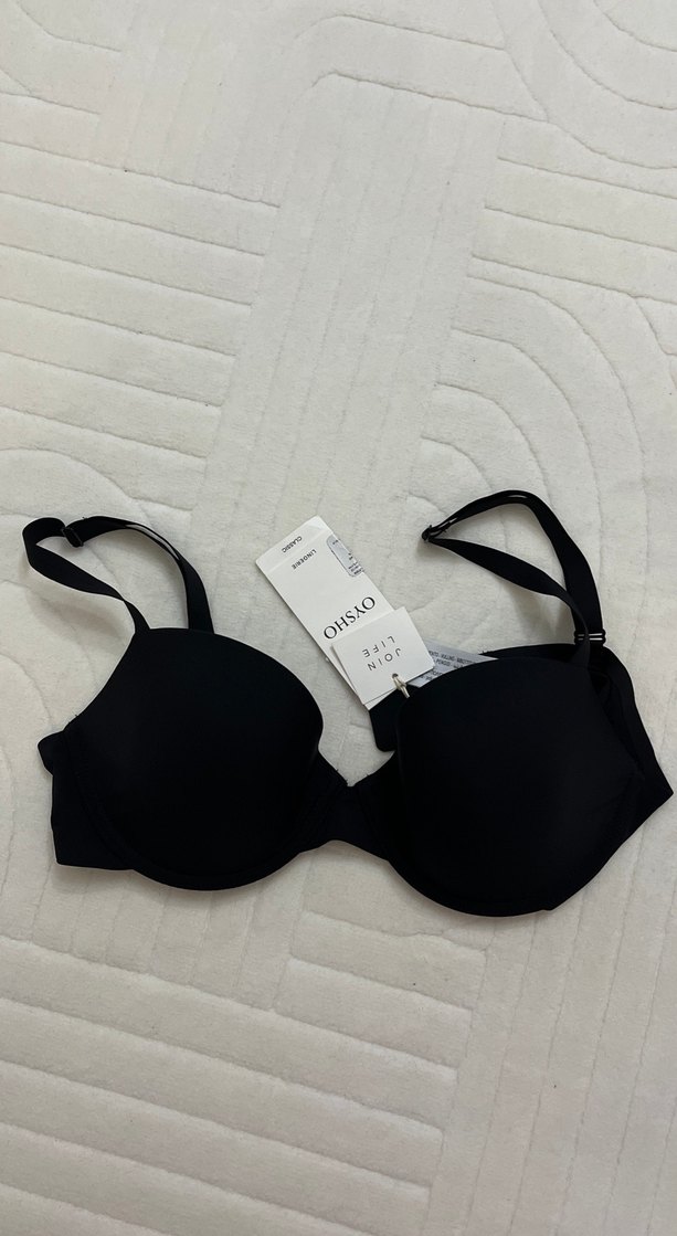OHSAC markalı siyah minimalist sütyen, ayarlanabilir askılar ve desensiz tasarımıyla sokak tarzına uygundur. 85 C beden