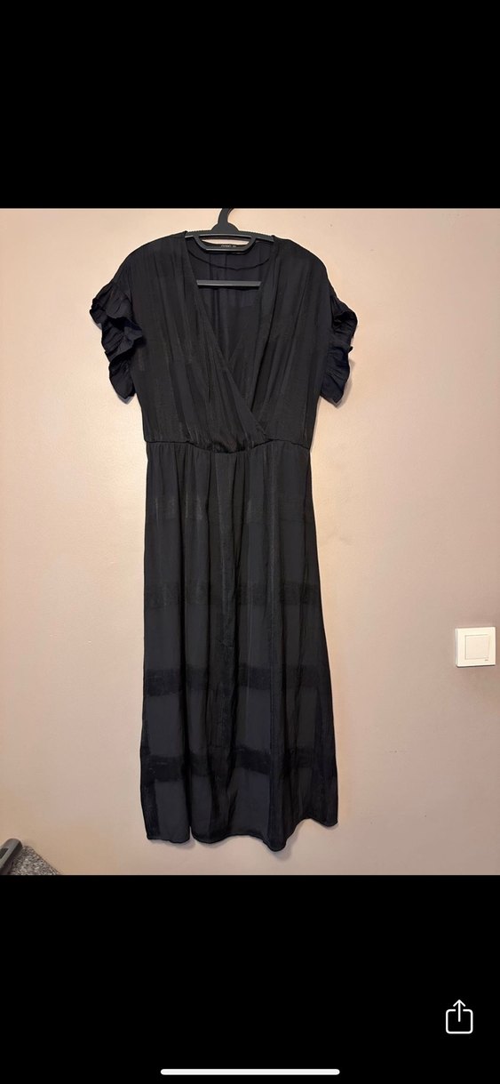 Oysho M beden Siyah, V yakalı ve askılı kollu uzun elbise. Salaş kesimiyle gotik ve avangart tarzı yansıtır, günlük kullanım için uygundur.