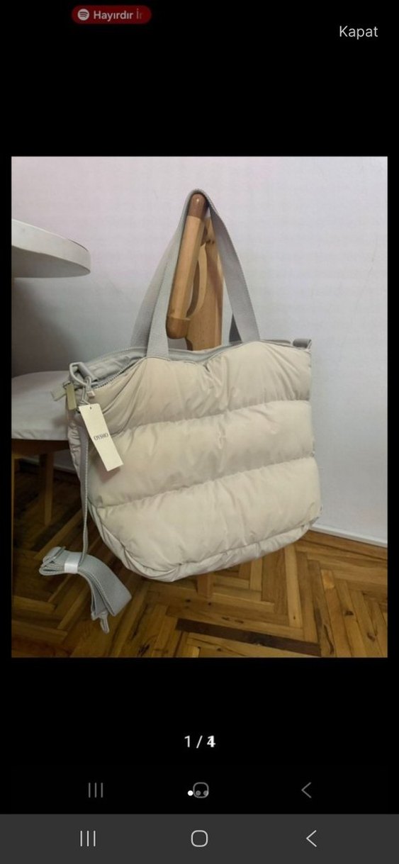Gri kapitone kumaştan yapılmış, tokalı tasarıma sahip kadın çantası, trend sokak modası ve günlük kullanım için uygundur. hiç kullanılmadı