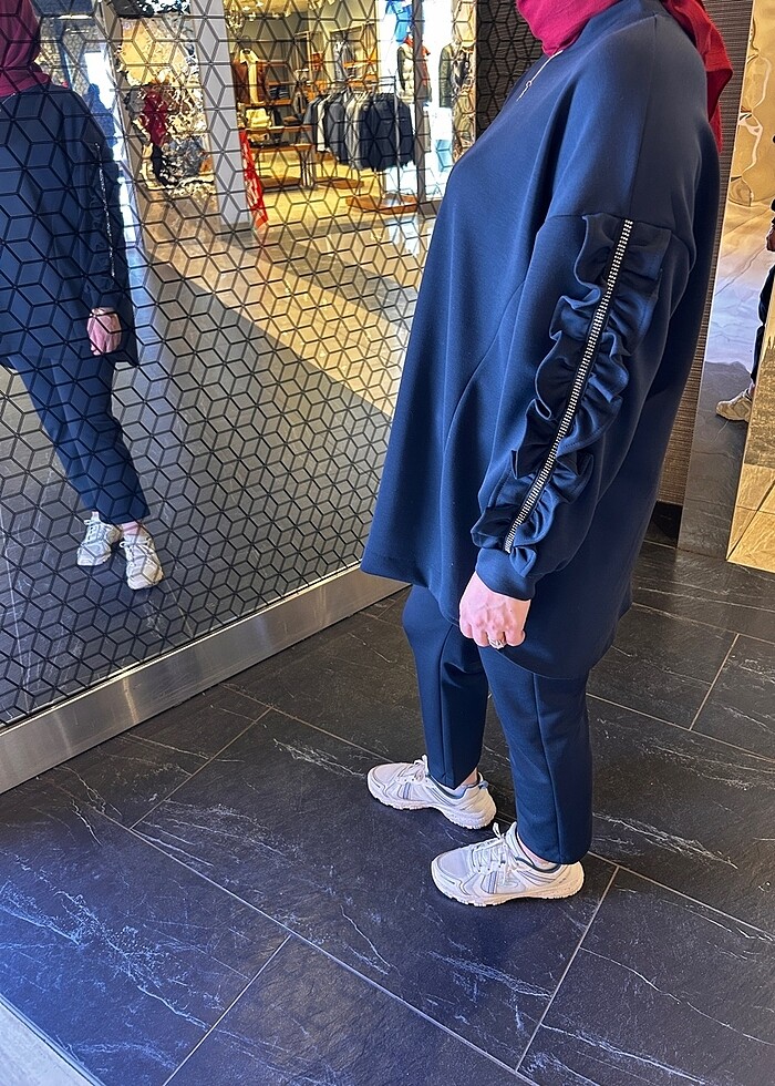 Oysho Kumaş • Üst ön uzunluk : 77cm • Üst arka uzunluk : 83cm • Pantolon beli lastikli : 95cm Lacivert & siyah S&M beden renk için ilan açıtırınız