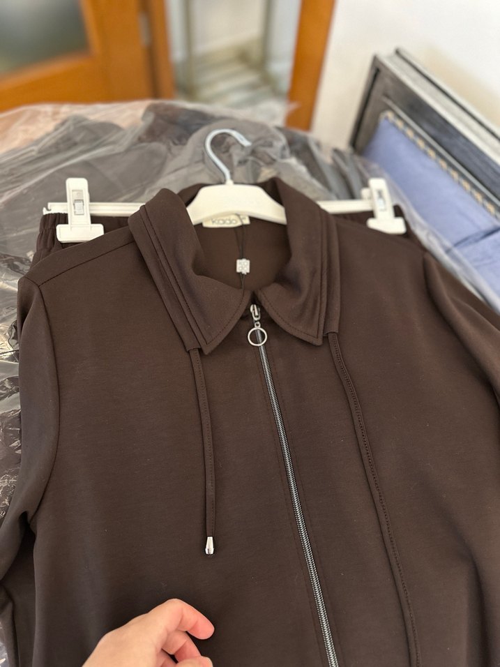 Kahverengi, yakalı ve önden fermuarlı. Gevşek kesim, uzun kollu ve yumuşak sıcak kumaştan üretilmiştir. Hem şık hem spor, sade tasarımıyla günlük kullanıma uygundur. Kumaşı ultra kalite bir oysho kumaş. Acı kahve ve siyah rengi mevcut. 38-40-42-44 beden mevcut..