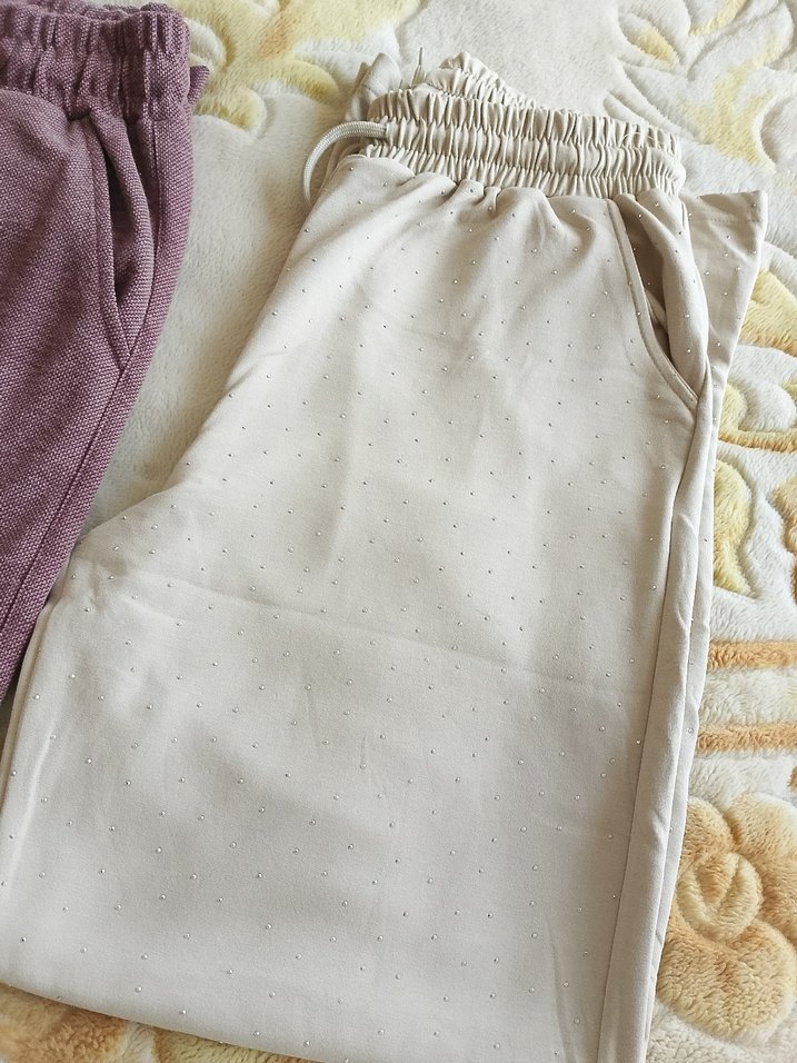 Yumuşak sentetik kumaştan, pilili detaylı beyaz midi pantolon. Rahatlık için lastikli beli vardır, sade ve konforlu bohem tarzda. Günlük kullanıma uygundur.