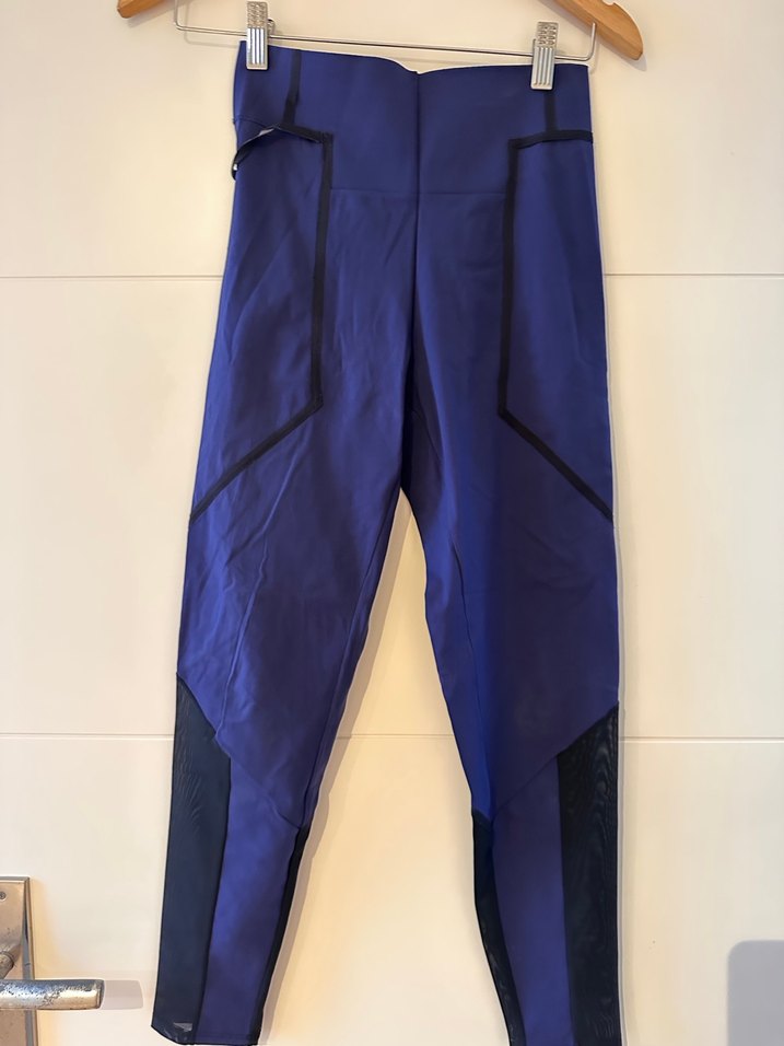 Kemer detaylı, mavi mor tayt, sentetik kumaştan üretilmiştir. Spor ve sokak stili için uygundur. ♀️