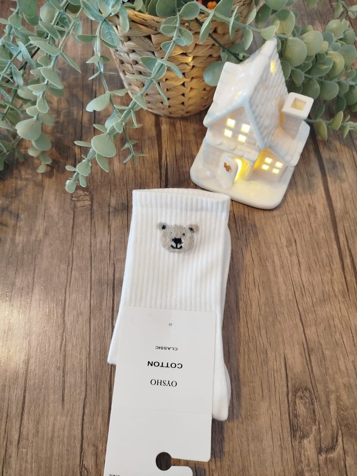 2 Li PAKET Pamuklu beyaz kız çocuk çorapları, gri ayıcık deseniyle yumuşak ve rahat kullanıma sahiptir. #oysho #kutupayisi #oyshocorap