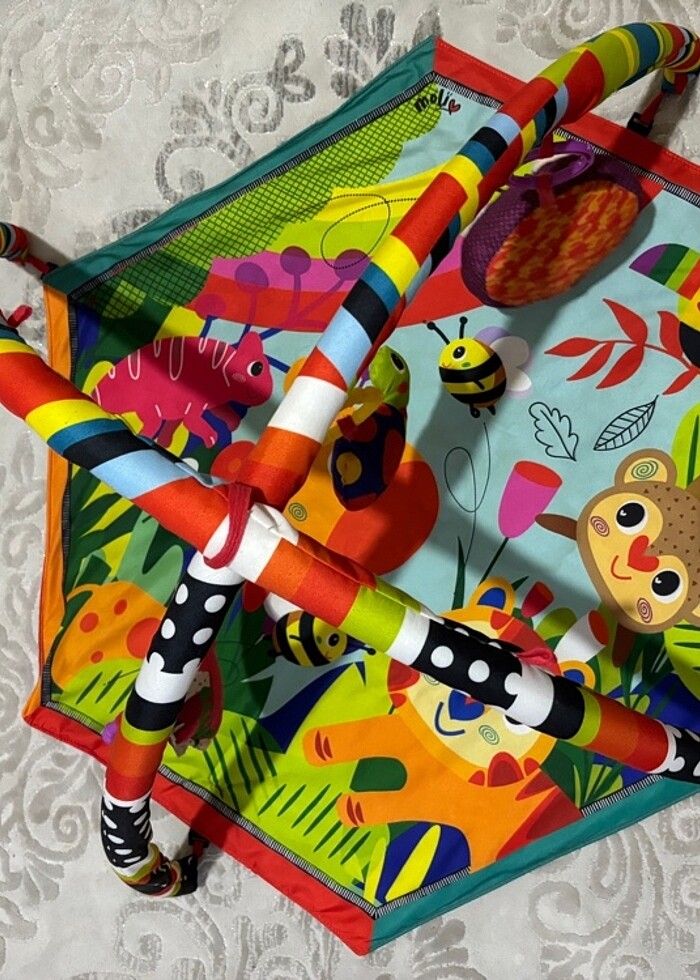 Ebebekten aldım bebeğim çok az kullandı oyuncakları herşeyi sağlam sadece halıda ince bir ip kaçması var belli bile olmuyor çok yakından çektim görmeniz için. 350 tl ye almıştım sitesinden bakabilirsiniz. Başının altına koyması için küçük yastığı da var aynı renklerde fotoğrafını çekemedim ama yanında yollıycam.