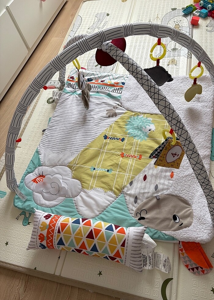 Fisher-Price oyun halısı. Bebeğim çok sevmediği için sayılı kullanıldı. Genel olarak battaniye serip yatırdım üzerine. Makinede yıkanıyor bende iki kere yıkadım. Yalnız tilkisi kayıp onun dışında bir eksiği yok. büyük olduğu için uygulamanın kargo sınırını aşıyor normal gönderim sağlanacaktır