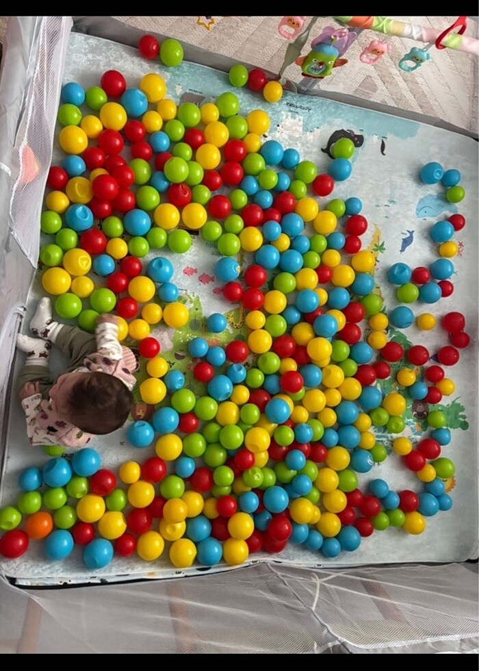 Havuz 150x150 ölçülerinde. Oyun toplarının kapladığı hacmi görmek amaçlı kullanılmıştır. ( oyun parkının satışı farklı bir görselde mevcuttur )