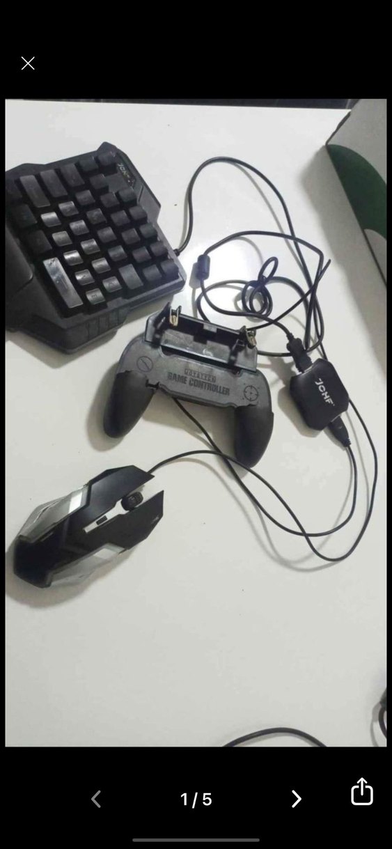 Kablolu siyah ve gri renklerde oyun kumandası ve küçük klavye seti, hassas kontrol sağlar. Ergonomik tutuş ve çoklu tuş özellikleri bulunur.