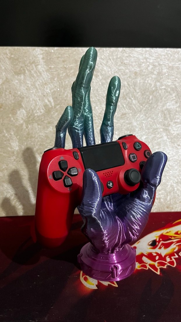 PlayStation kumandasını tutan dekoratif, el şeklinde tasarlanmış şık ve sanatsal bir tutucu.