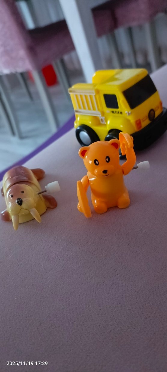 3'lü olarak satıyorum. Renkli sarı oyuncak kamyon ve kurmalı ayı ile mors figürleri içerir. Canlı ve eğlenceli tasarım. hepsi çalışır durumda.