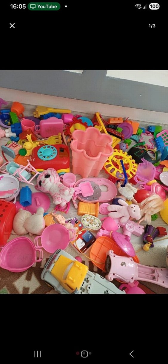 Çeşitli küçük oyuncak ve figürlerden oluşan renkli oyuncak seti. kullanılmıştır.