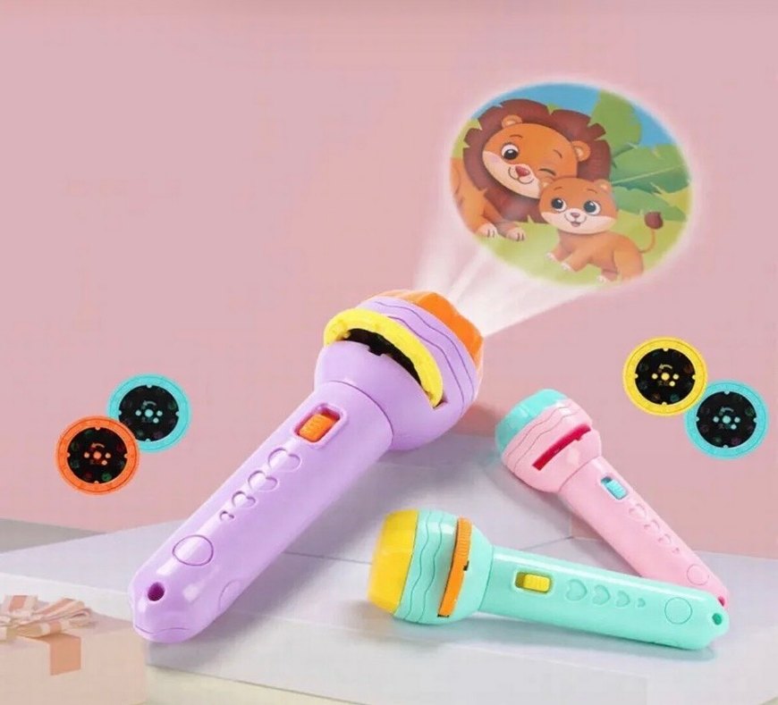 Bu renkli oyuncak, hayvan görüntüleri yansıtır ve çocukların eğlenerek öğrenmesini sağlar.
