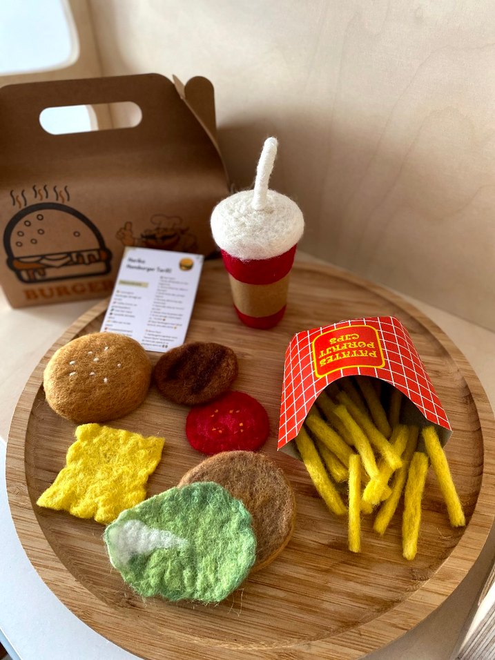 Oyuncak Hamburger setim El yapımıdır, Keçe ile tasarlandı.