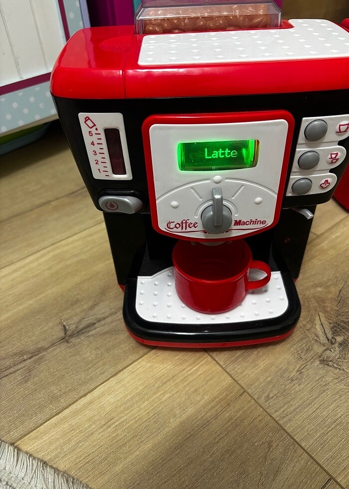 Oyuncak kahve makinası sesi kısıkta olsa çalışıyor.Herhangi bir kırık yoktur.
