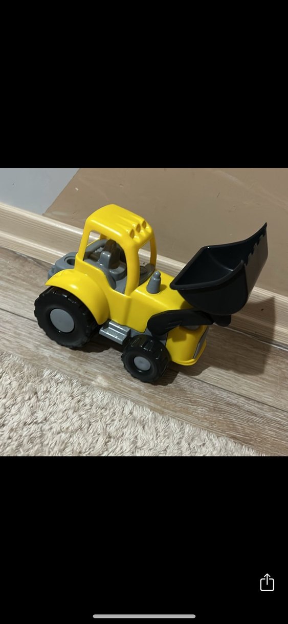 Sıfır ürün Sarı renkli oyuncak kepçe, hareketli siyah kepçe ve renkli tasarıma sahip.