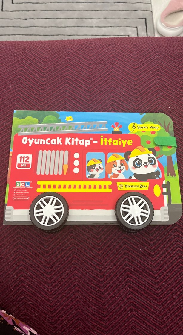 İtfaiye aracı şeklinde oyuncak kitap, 112 acil çağrı ve yangın güvenliği konularını eğlenceli şekilde öğretiyor.