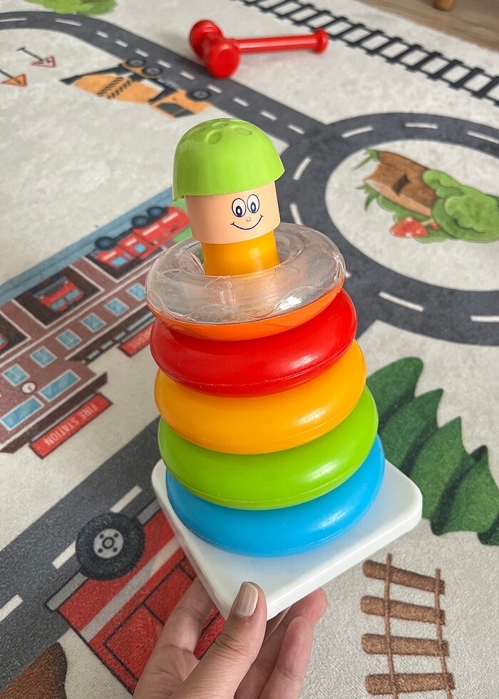 Eksiği ve kusuru yok bebekler için ilgi çekici bir oyuncak sallanıyor ve en üstteki daire çıngıraklı ses çıkartıyor