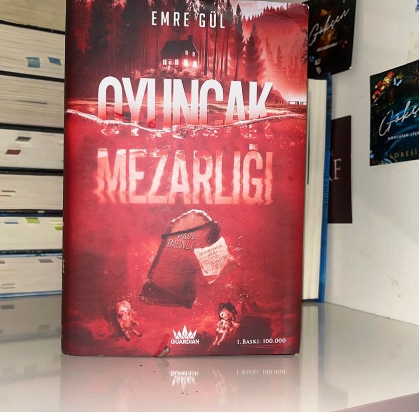 Emre Gül'ün yazdığı 'Oyuncak Mezarlığı' adlı roman, karanlık kırmızı kapaklı ve gizemli bir temaya sahip. 1. baskı, 100.000 adet basılmış.