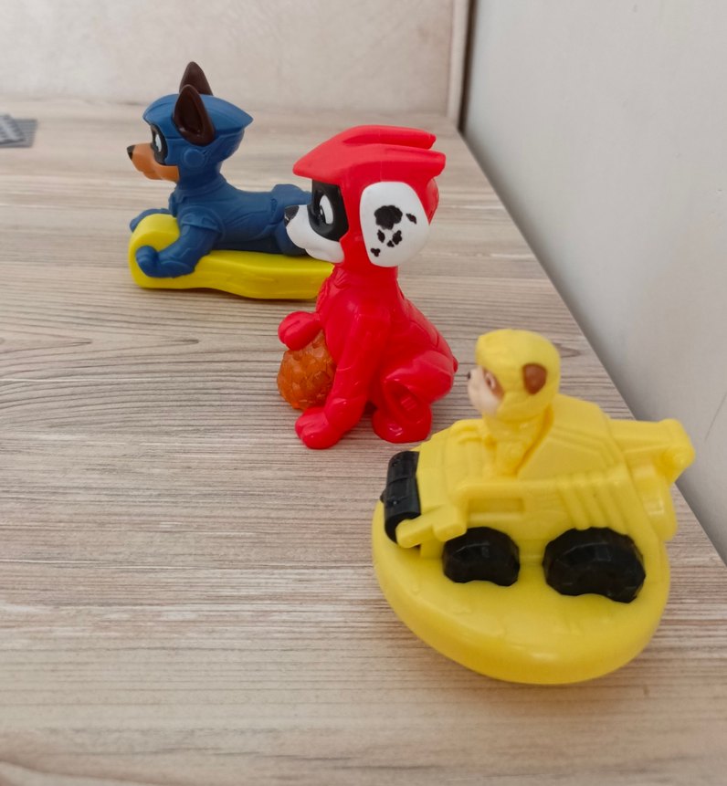 Canlı renklerde, sarı araç ve karakterlerden oluşan renkli oyun figürleri.