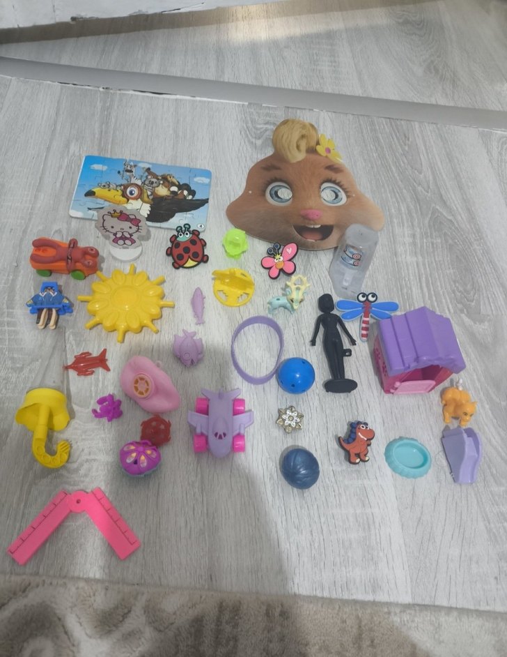 kedi evi hiç kullanılmadı, diğer oyuncaklarda yeni ,kullanilmis olarak iki üç oyuncak vardır. puzzle, köstebek maske hepsinin fiyatidir