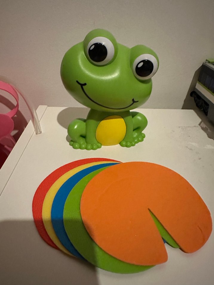 O ne söylerse onu yapın! Oyuncu kurbağa ile enerji harcamak çok keyifli olacak. Bir uçakmış gibi davranın, en sevdiğiniz hayvanı taklit edin. Tek ayaküstünde zıplayın ve daha birçok eğlenceli aktiviteyi arkadaşlarınızla birlikte bu kutu oyunu le yapın.Gong sesini duyunca hemen bir yaprağın üstüne çıkın ve damga kazanın. Oyunun sonunda en çok damgası olan oyunu kazanır. Bu oyunda eğlenmeniz, hayal gücünüzü kullanmanız ve enerji harcamanız için 50’den fazla aktivite yer alıyor. Ürün Ölçüsü; 11 x 8,6 x 13,9 cm. 2 x AA Pil ile çalışmaktadır.