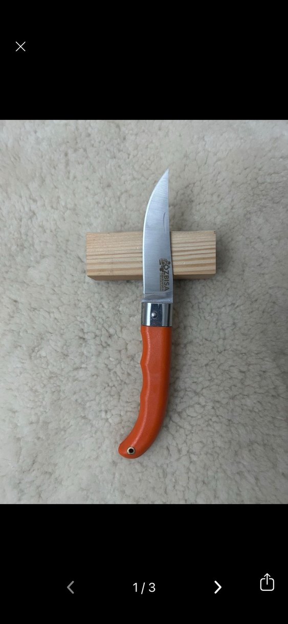 ÖZBİSA Parlak turuncu saplı ve keskin paslanmaz çelik bıçağa sahip çok amaçlı bıçak.