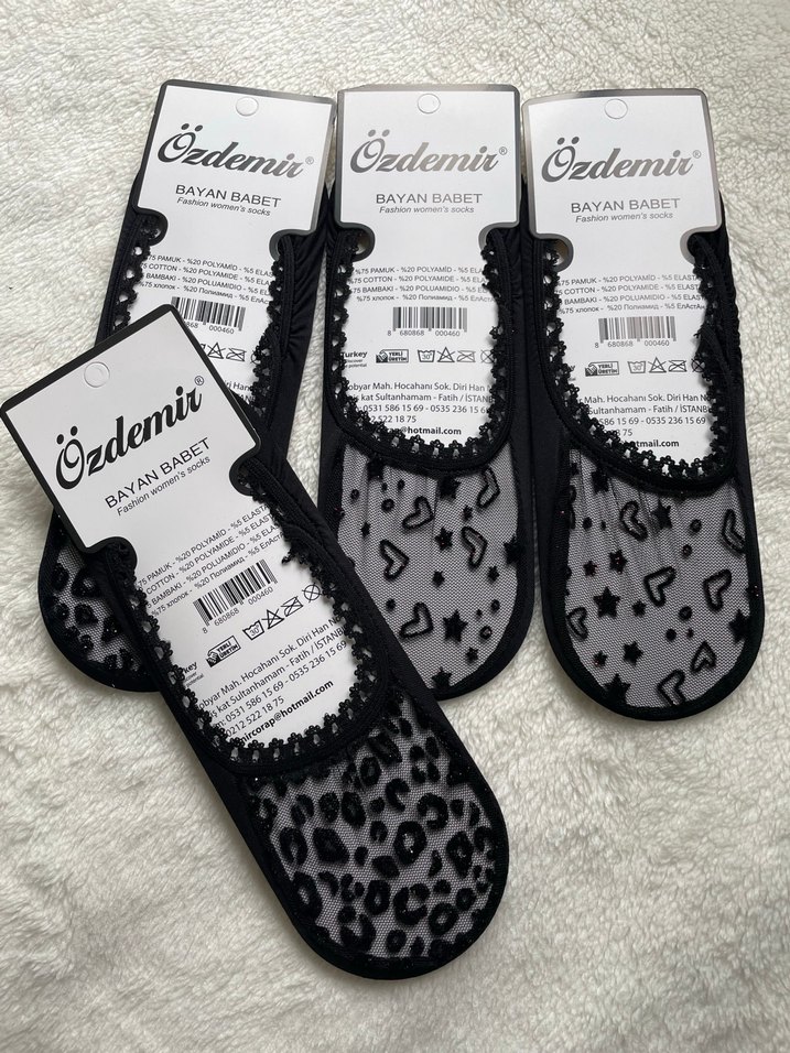 Özdemir markalı kadınlar için siyah desenli babet çoraplar, yumuşak dokulu ve rahat kullanım sağlar.