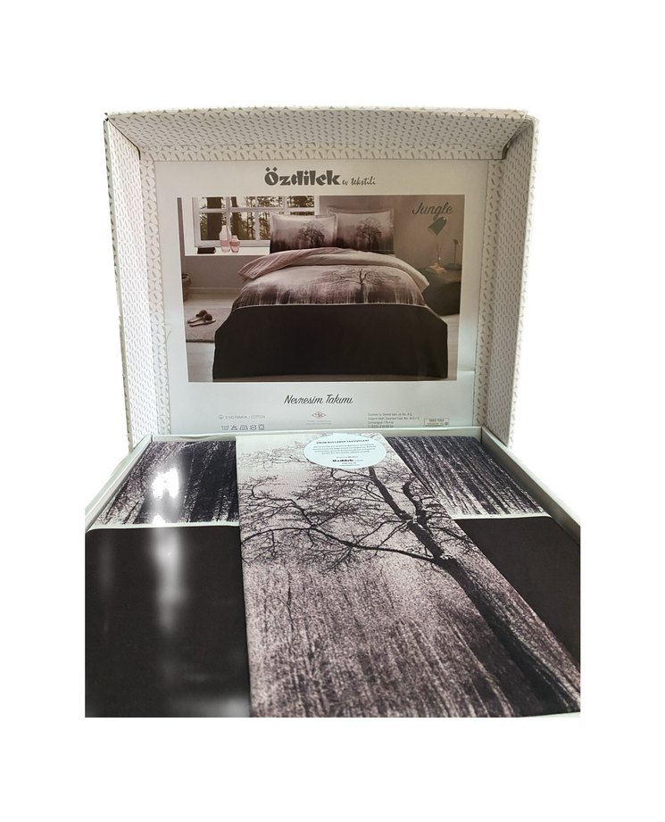 Gri ve siyah tonlarda baskılı desenlere sahip nevresim takımı, yatak odanıza modern ve rahat bir görünüm kazandırır. Kumaşı yumuşak dokuludur.