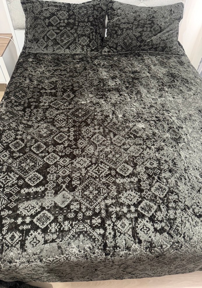 Yeni defosuz çok az kullanıldı resim çekmek için serdim şuan kaldırıldı ve yıkandı 1 yatak örtüsü 250*270 battal boy 2 yastık kılıfı 50*70 cm’dir (pike değil yatak örtüsü takımı seçenekler de olmadığı için pike olarak devam edebiliyorum ürünü yüklemeye)