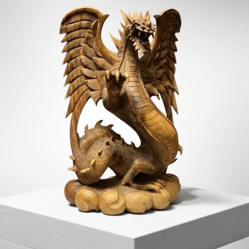 ÖZEL Avrupa El Oyma Ahşap Ejderha Heykeli
