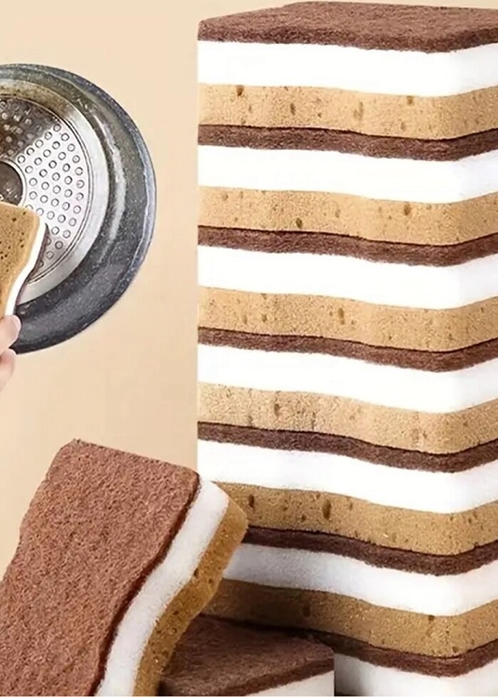 4 adet Kahverengi Üç Katmanlı Çift Taraflı Çift Etkili Bez Sihirli Mendil Güçlü Lekeleri Çıkarıcı Mutfak Banyo Küvet Zemin Özel Bulaşık Süngeri Mendil