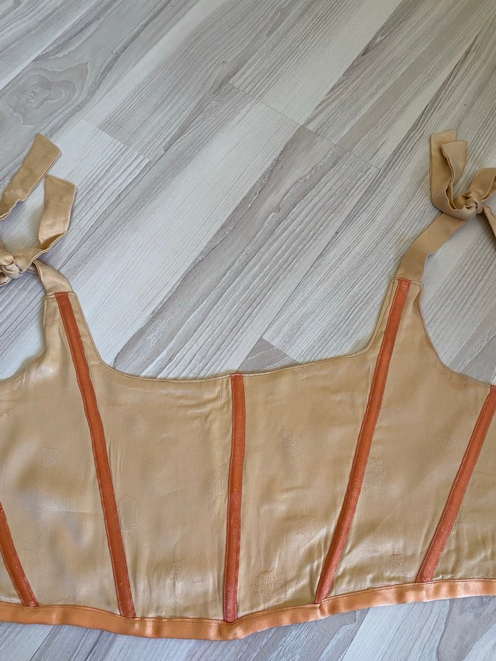 Bej deri, askılı ve straplez tasarıma sahip bu fitted büstiyer, drapeli detaylarla bohem tarz sunar. Günlük kullanıma uygundur.