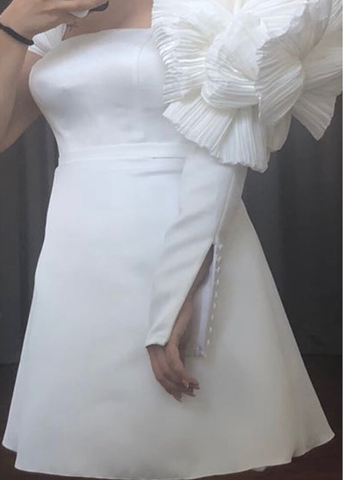 1defa giyildi özel dikim uzun kollu cıkarılıyor, fırfır detayı sabıt 38 bedene uygun arkası ipli #nikahelbisesi #kısagelinlik #afterelbisesi #gelinlik #mezuniyetelbisesi #elbise #beyazelbise #gelinlik #abiye #özeldikim #zara #koton #beyaz #kınalık #gelinlik