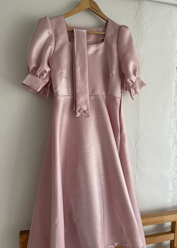 Parlak saten kumaş m beden kemerli ve kol altı fermuarlı yapılmıştır.1 kere giyildi