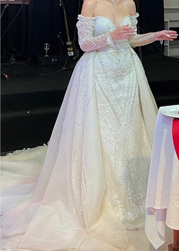Özel dikim 36-38 beden uyumlu Tek tek elle işlenmiştir ağır çok güzel bir gelinlik Detaylı görsel için yazabilirsiniz