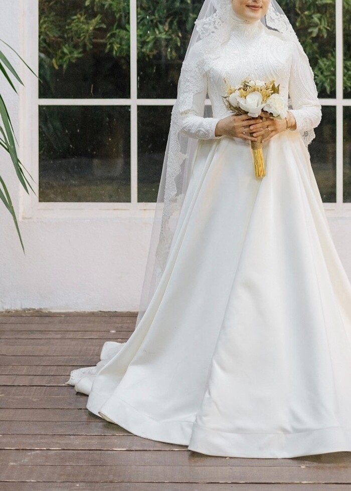 Hiçbir sorunu yok, 2.5 metre kenarları fransız güpürü duvak ile gönderilecek. s/m beden uyumlu
