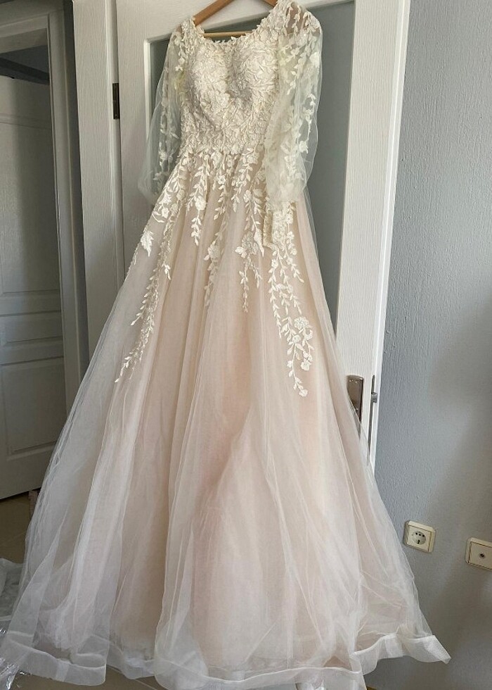 3 boyut çiçekli, Cappuccino rengi astarlı, 1. Kalite ithal tül, her şeyi özenle dikilmiş ve tasarlanmıştır. Kuru temizlemeye verilmedi. Bunu hesaba katarak fiyatı uygun koyuyorum. Satıcı iyi bir kuru temizleme konusunda bir sorun olmayacağını belirtti. Depoda kaldığı için buruşuk. Üstteki halinin fotoğrafı sonda. 34-36 bedene uyumlu. İzmir moli marka tasarımcının özel ürünüdür.