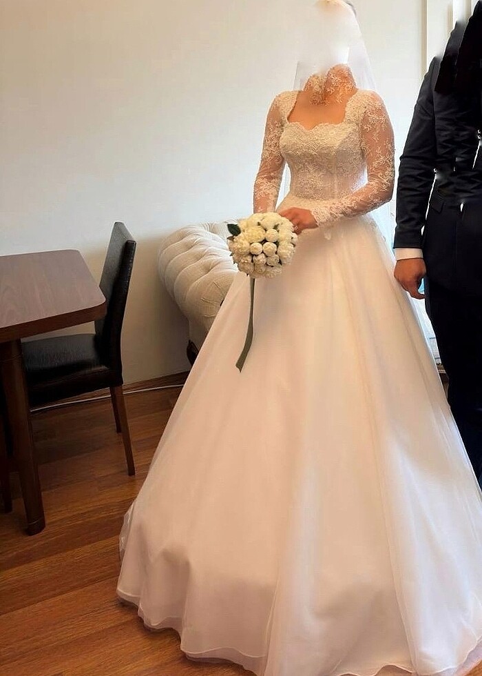 Ürün sadece bir kere kullanılmıştır özel dikimdir Fransız güpürü kumaştan dikilmiştir 34/36/38 beden uygundur 57 kg 1.63 boy uyumlu ölçüye uyumlu dikilmiştir ayakkabıyla birlikte 1.70 boya kadar kullanıma uygundur arka kısmı ayarlanabilir ipli formdadır uzun duvak ve tarlatanı ile gönderim sağlanacaktır etek uç kısımlarında hafif deformeler mevcuttur fakat kestirme payı vardır kuru temizlemesi yapılmamıştır