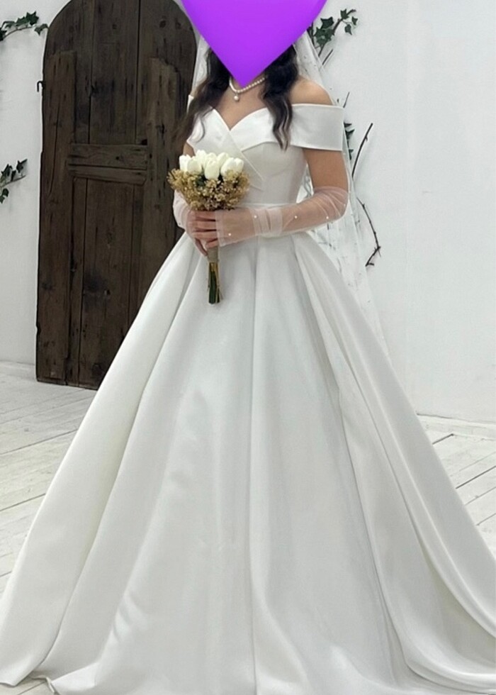 1 kere giyildi kiralık değildir 36-38-40 bedene kadar olabilir arkadan ipli giydimde 60 kiloydum boyum 167 topuklu vardır fotoğraflarda incili duvak ve eldiveni vardır
