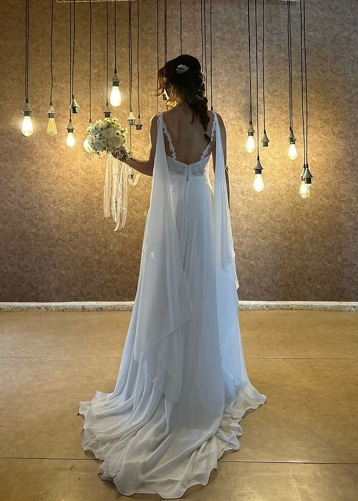 Nikah elbisesi olarak diktirdiğim Fransız güpürlü omzu uzun kuyruklu sırt dekolteli gelinliğim sadece bir kaç saat kullanıldı sorunsuzdur