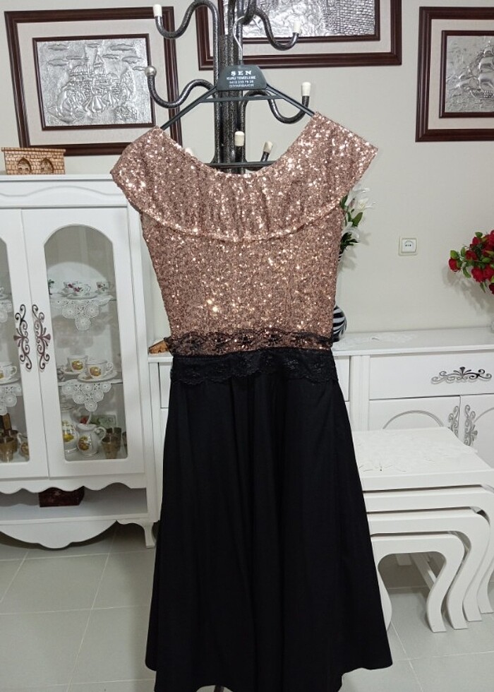 Özel dikim pul payet genç elbise
