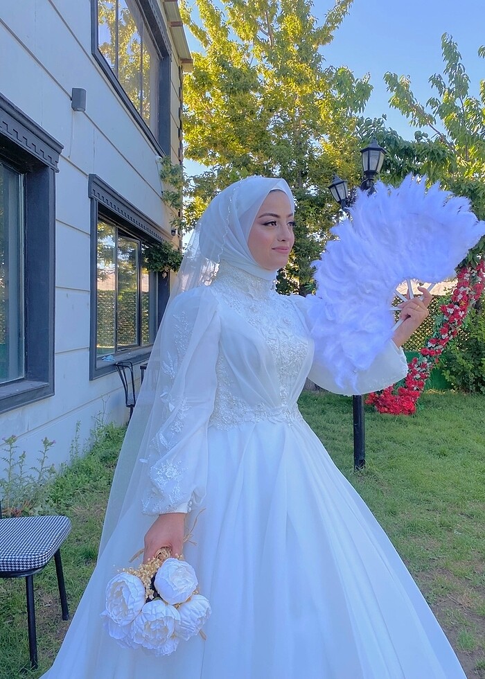 Gelinlik tek bir sefer giymiştir özel dikim kendime göre diktirdim herhangi bir deformemesi yoktur kuru temizlemeye gönderilip sipariş gönderilecektir bir adet başörtüsü iki adet de duvak mevcut