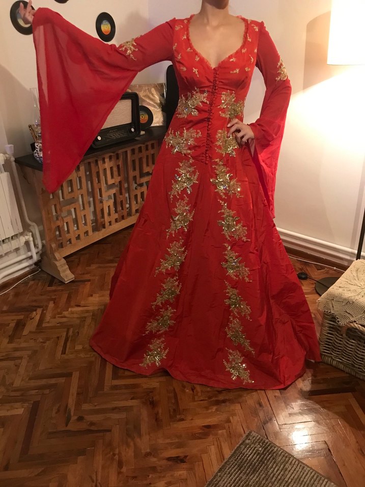 Kumaşı ipek taftadır. Hiçbir sorunu yoktur. 38 bedene uygundur